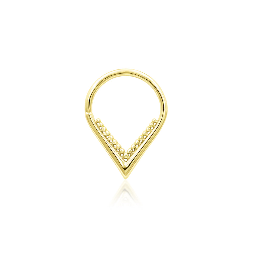 Make your family Proud with Junipurr’s Penny Seam Ring. Penny is a beautifully detailed piece offered in yellow gold, rose gold, and white gold. Penny offers a hollow “V” silhouette, decorated on the inner seam with dainty beading. Use this piece as part of a complex and unique curation, or make it the star of the show!